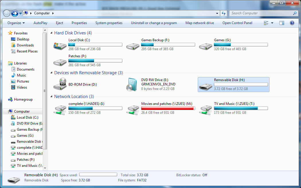 Make a note of the drive letter of your Windows DVD and your newly formatted thumb drive: