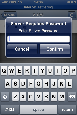 When you press continue, you’ll be taken back to your server list and you’ll be able to tap your server’s name to connect and browse through the folders you shared. It’ll look something like this: