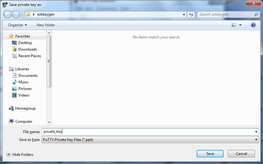 Next, press “Save public key” and “Save private key” and save the two files to a safe place on your local workstation.