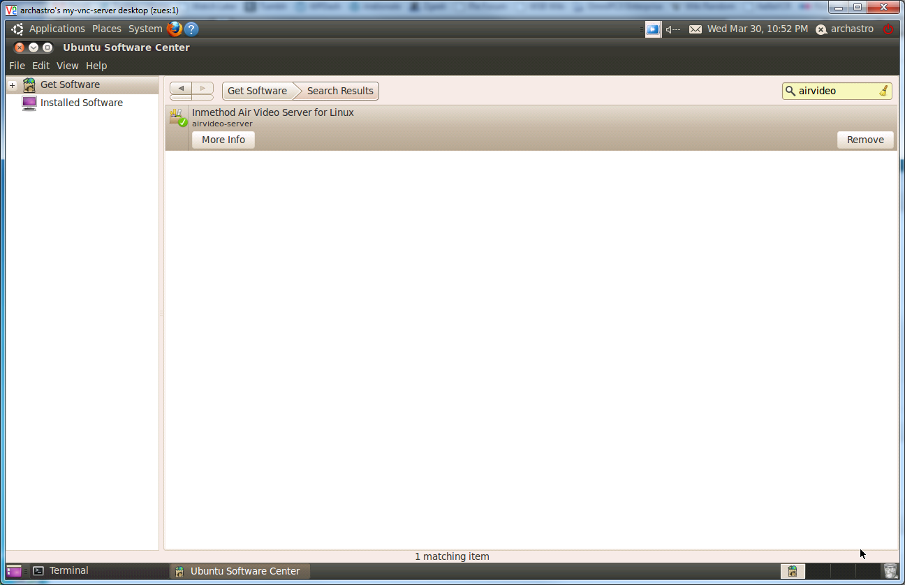 When you search in Software Center for Airvideo, you should now see the following entry: