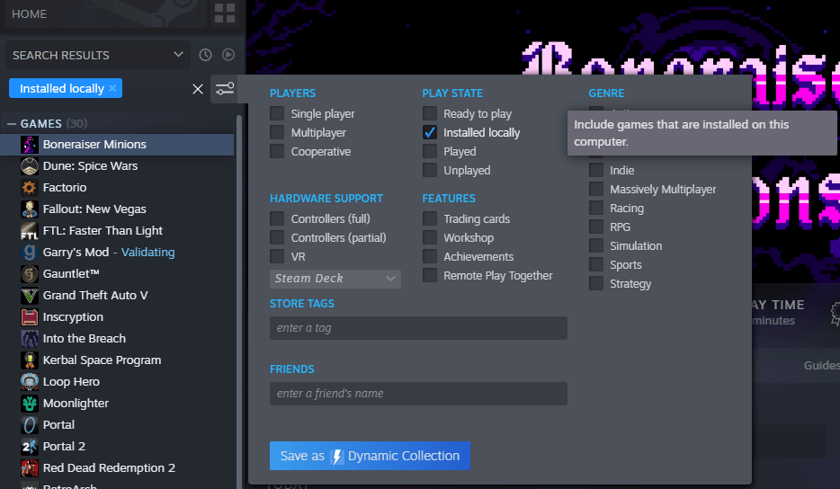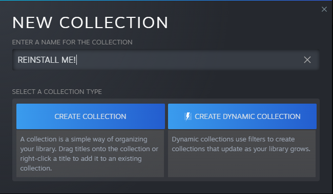 Don’t be tempted to save these games as a Dynamic Collection – once you reinstall, they won’t be installed locally anymore, and the collection will be blank.